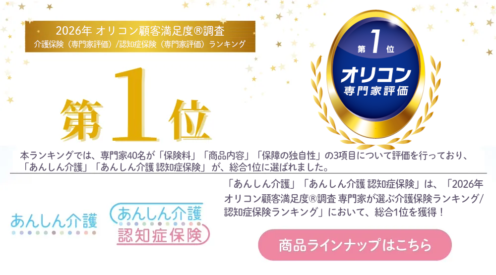 「2026年 オリコン顧客満足度®調査 専門家が選ぶ介護保険ランキング / 認知症保険ランキング」で「あんしん介護」「あんしん介護 認知症保険」が総合1位を獲得しました。